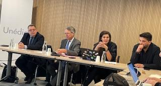 La délégation patronale, le 11 mars 2026, au siège de l’Unédic